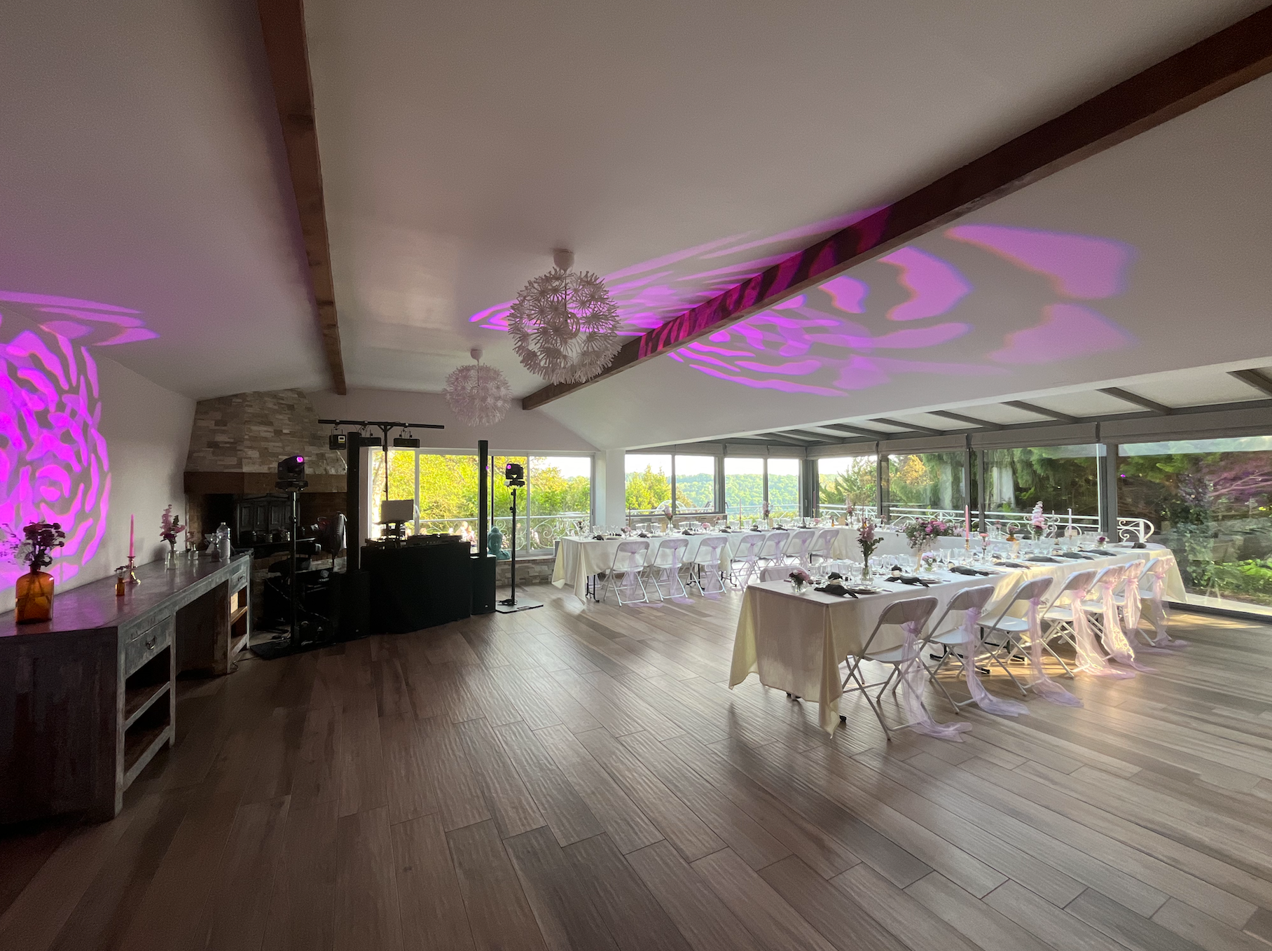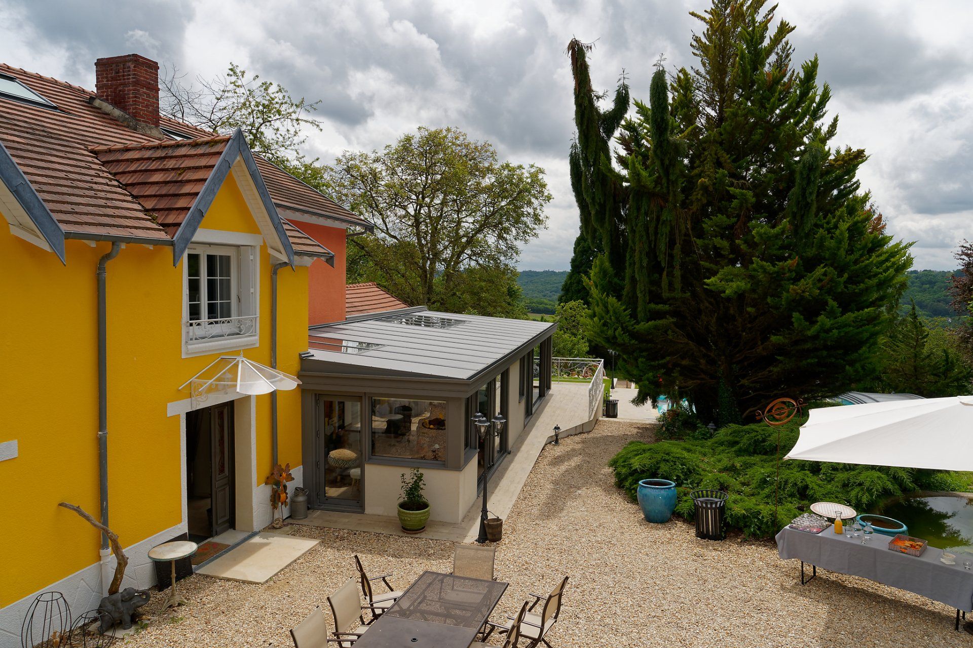 Verananda : jardin d'hiver et véranda avec vue sur la Vallée du Petit Morin, en une pièce ou en deux selon le type d'événement et vos besoins d'organisation.