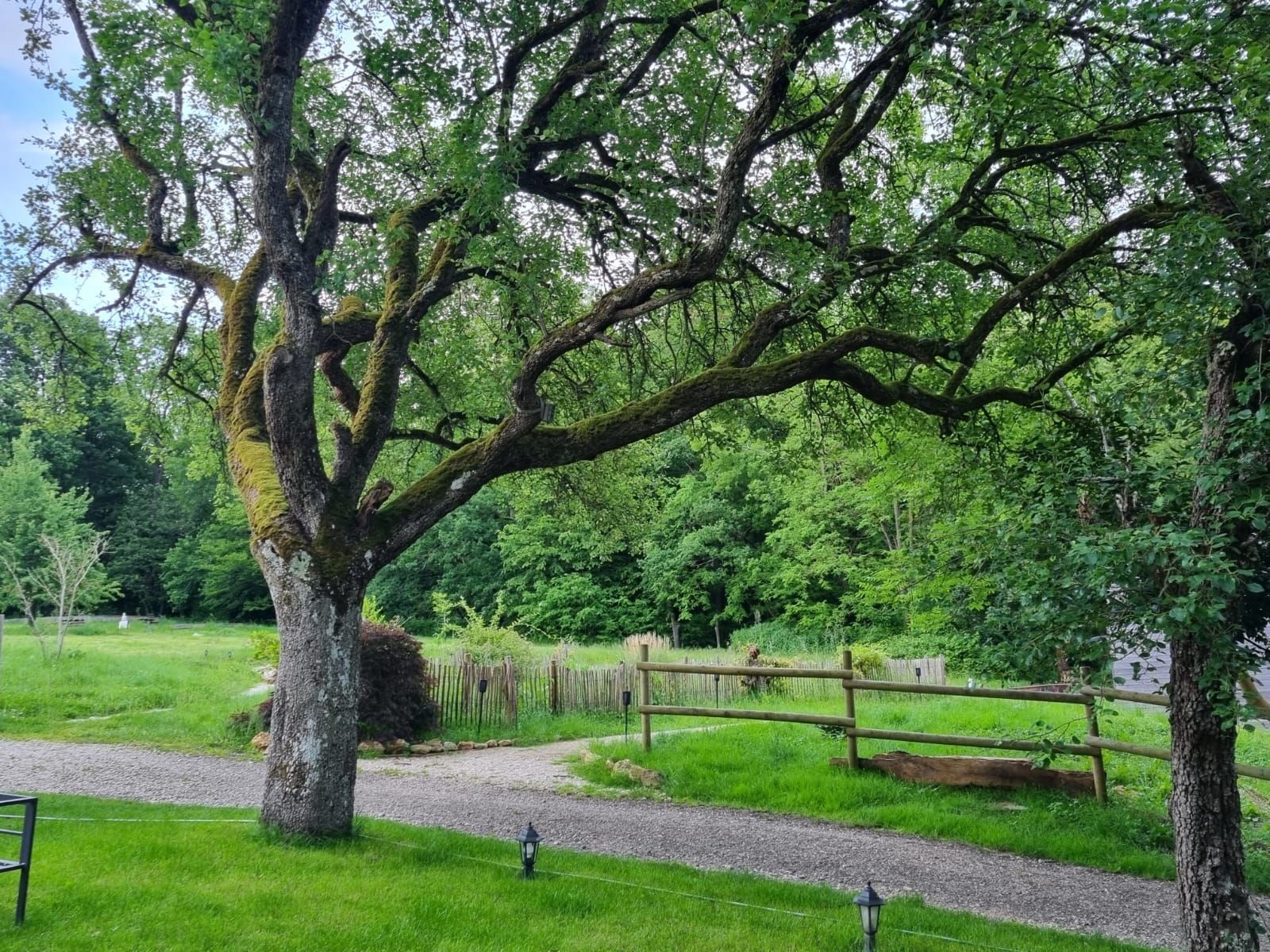 5 hectares de forêt, peuplés de surprises au détour des petits sentiers, des prés pour notre cheval Hidalgo et les deux anês Goji et Jingle.