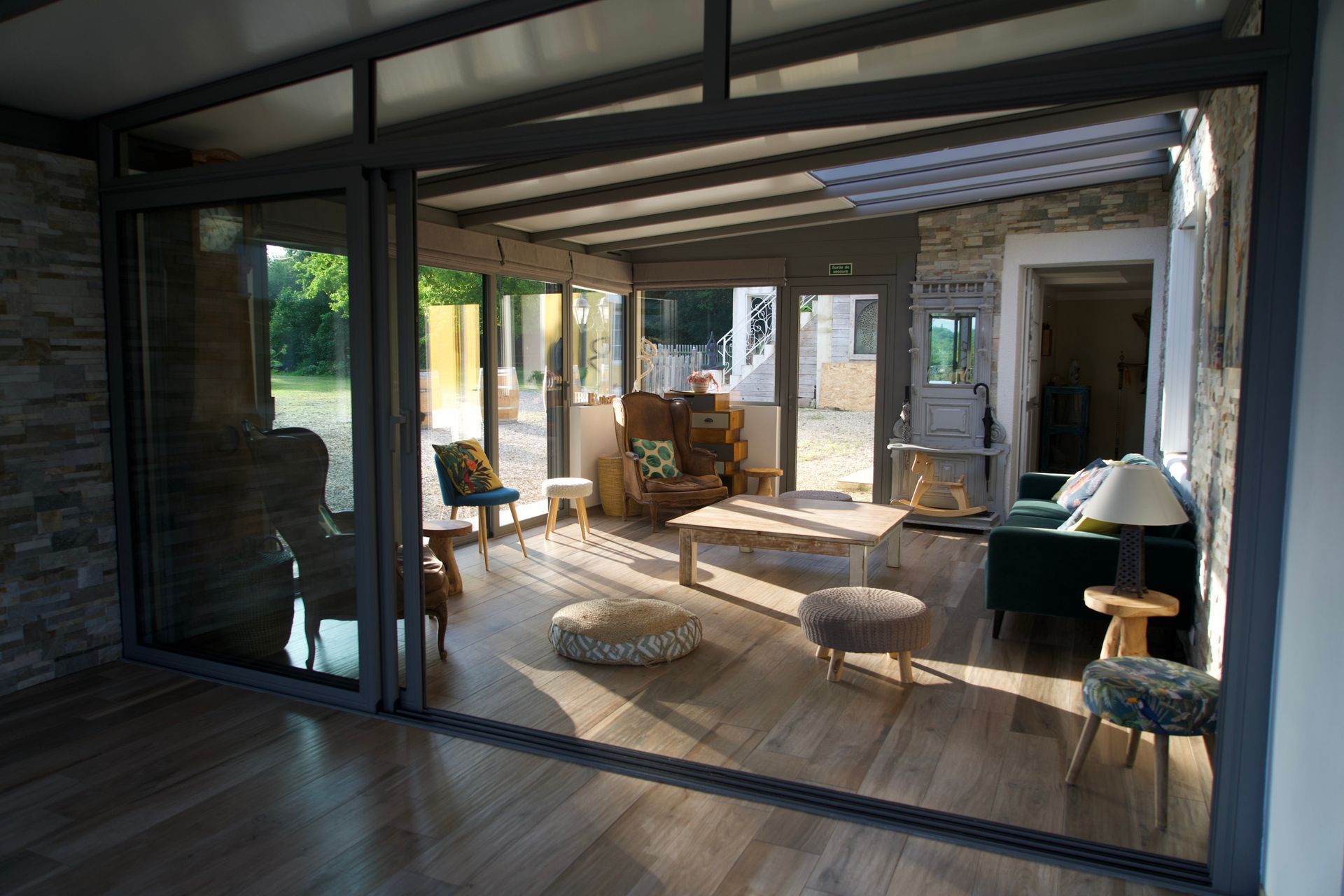 Verananda : jardin d'hiver et véranda avec vue sur la Vallée du Petit Morin, en une pièce ou en deux selon le type d'événement et vos besoins d'organisation.