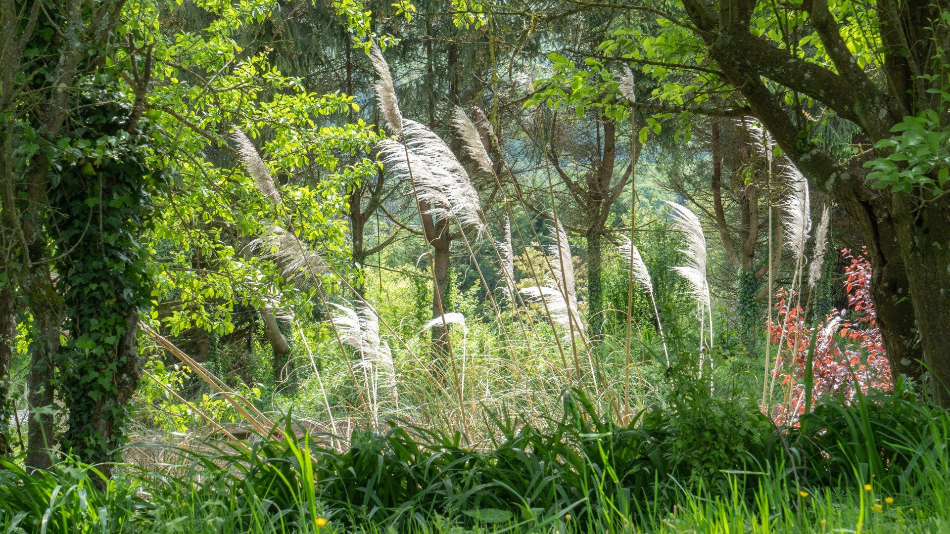 Un parc aux essences d'arbres variés, séquoias, pins, arbres fruitiers, grands chênes, noyers...