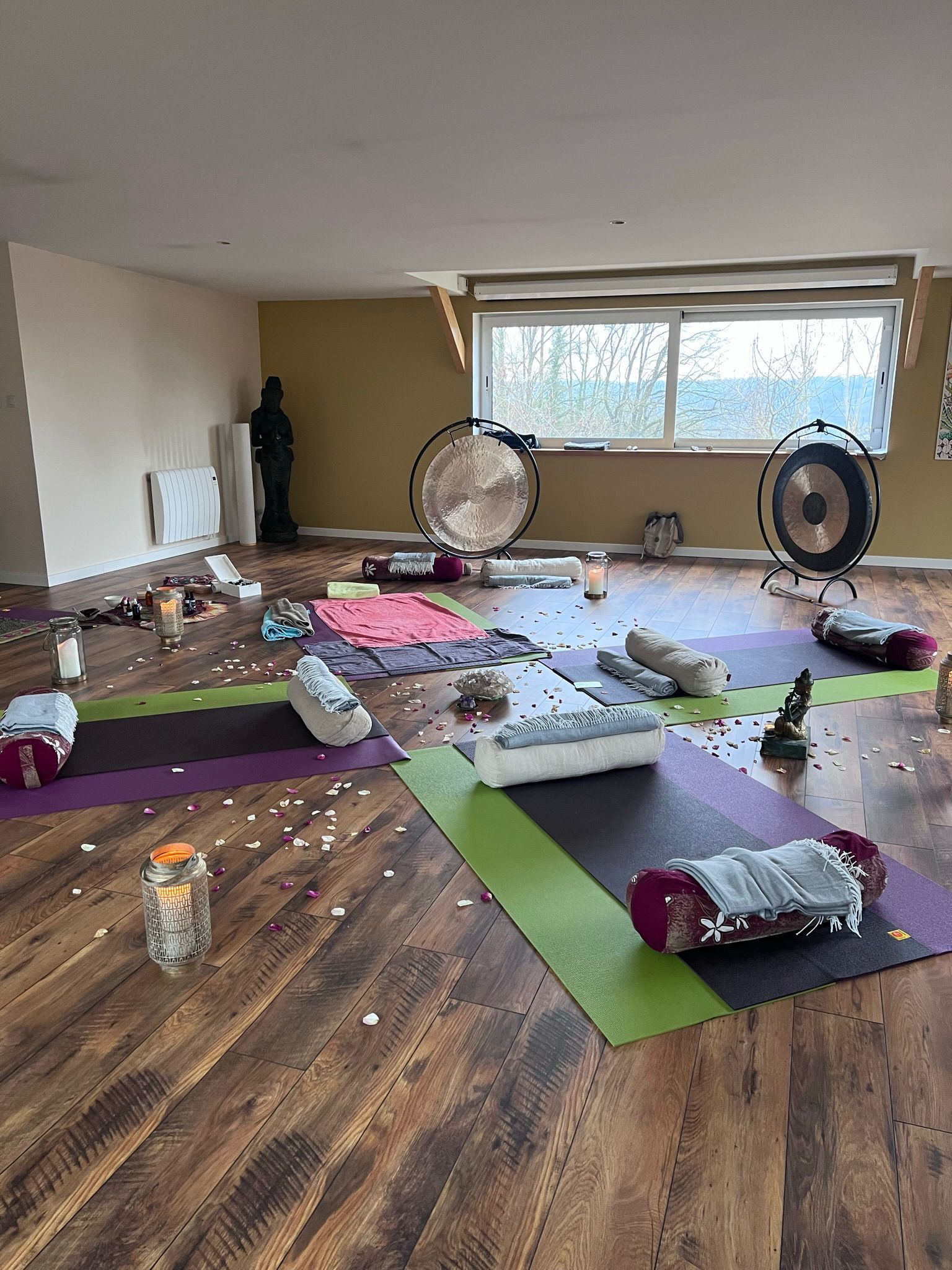 Trinité instants d'harmonie : en étage, cette salle est réservée aux stages de yoga, bien-être, développement personnel. Elle peut vous être proposée en option pour votre séminaire ou événement familial.